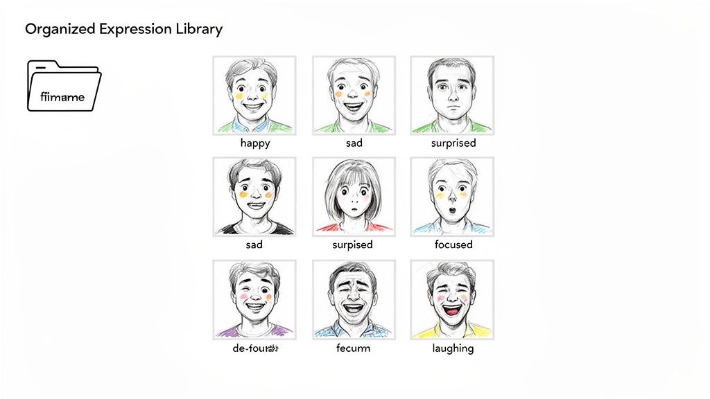 If you're constantly trying to change facial expressions from scratch for every new post, you’ll quickly notice your character starts looking a little… different each time. This is where a reusable expression library becomes your secret weapon for brand consistency.
