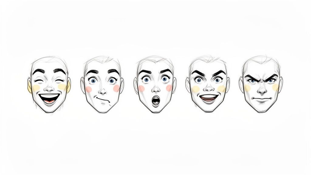 Being able to swap out facial expressions is more than a party trick—it's how you tell a story visually. That subtle shift from a blank stare to a wide-eyed grin or a furrowed brow? That’s what grabs people. It sets a mood and builds an instant connection. Without that emotional spark, even the most polished character design can feel hollow and forgettable.
